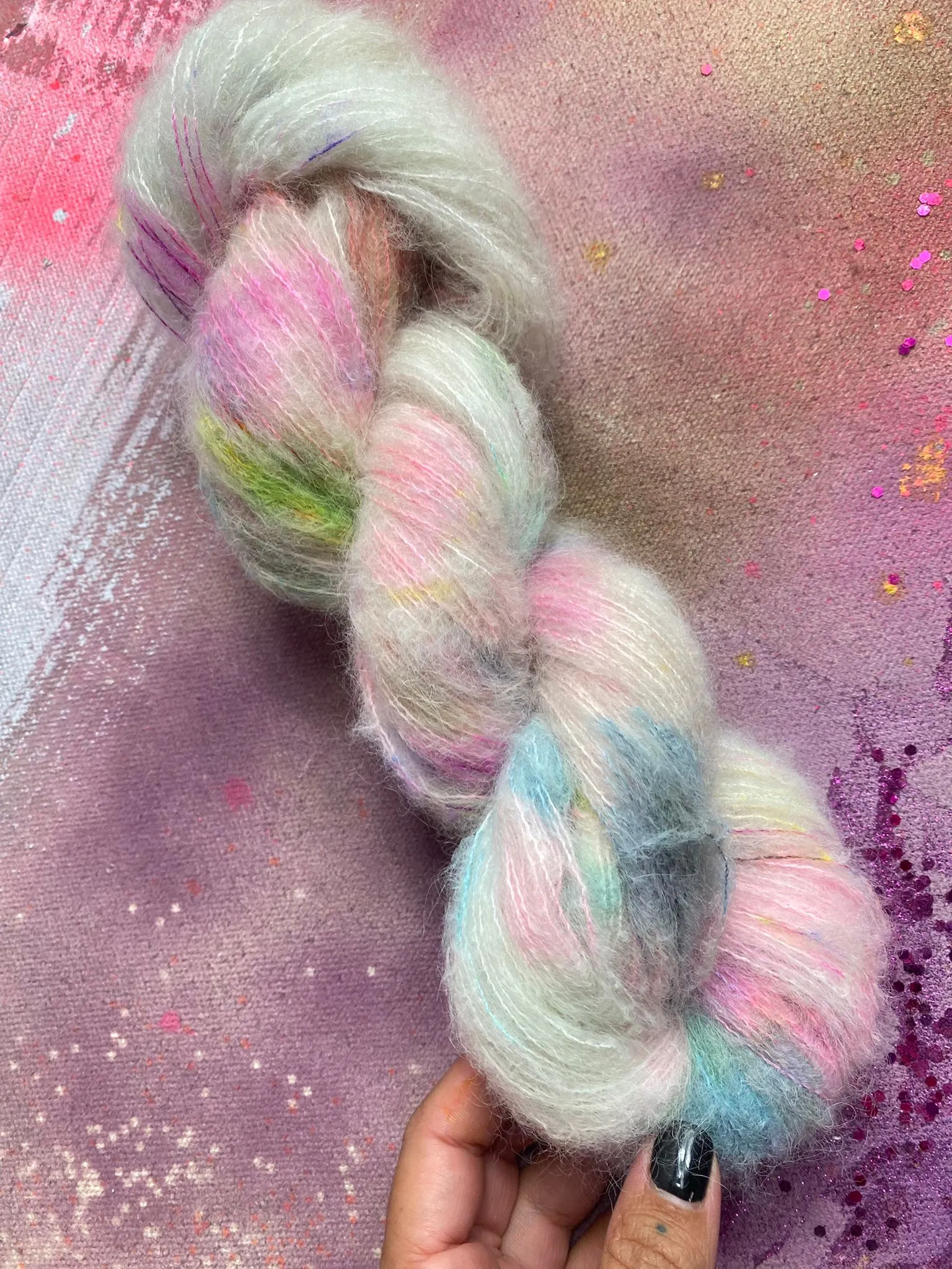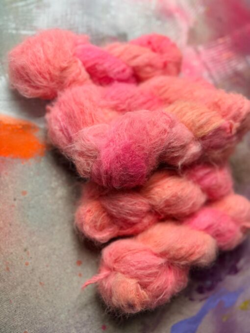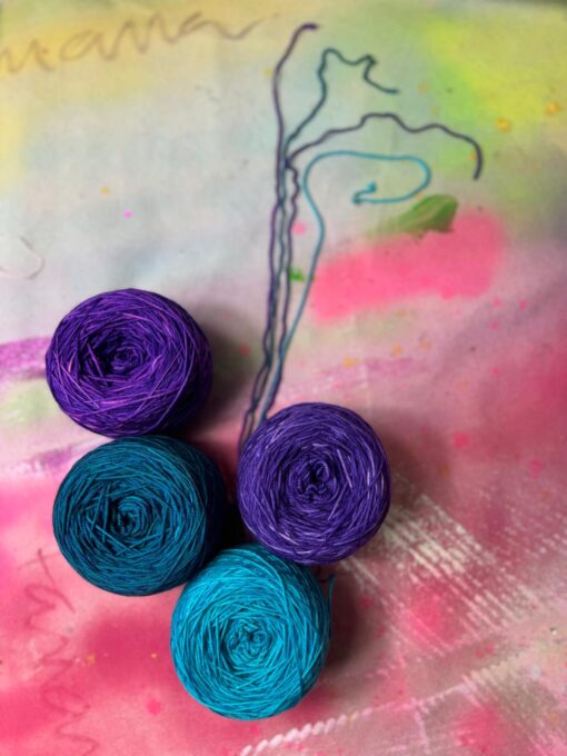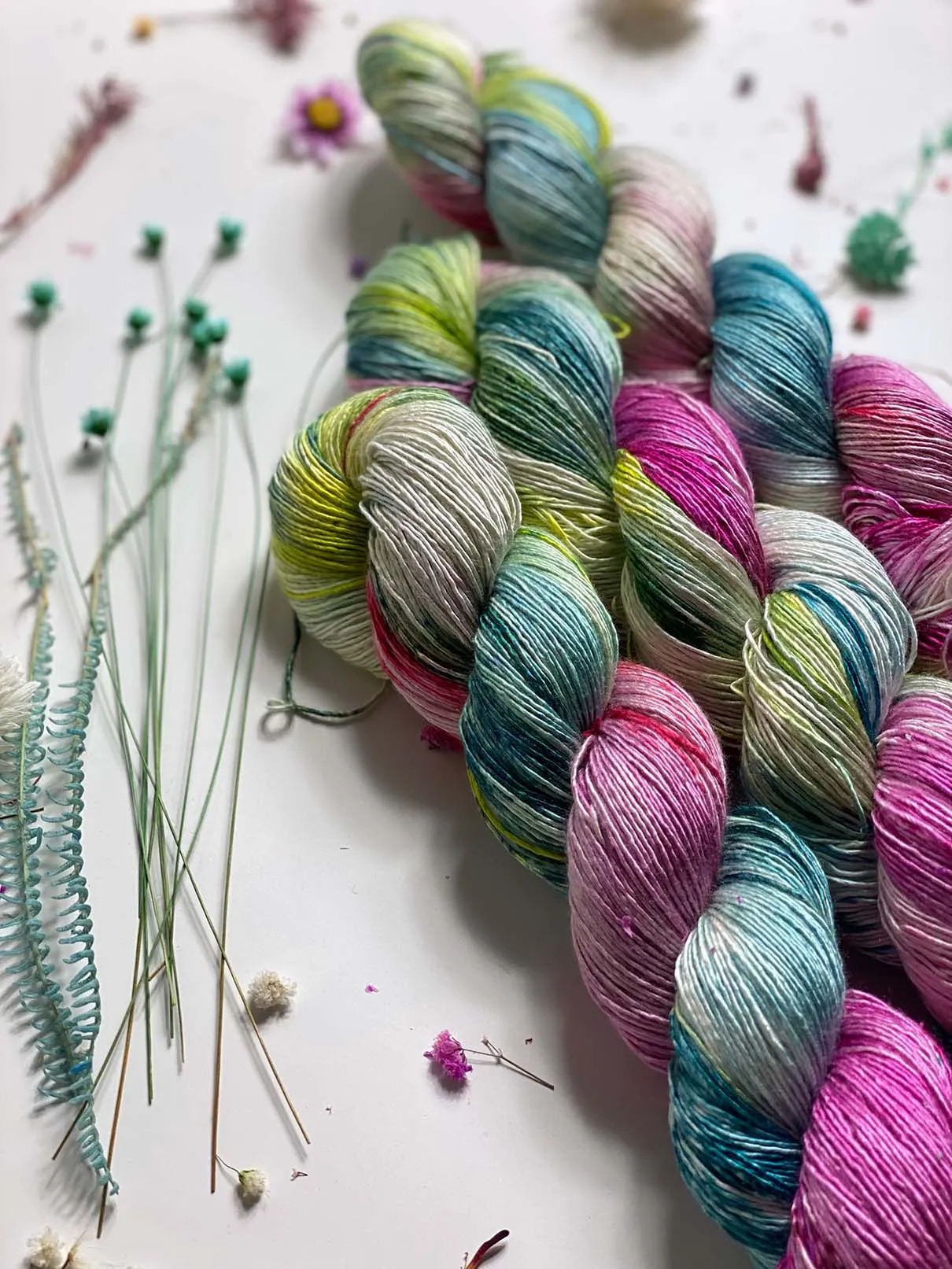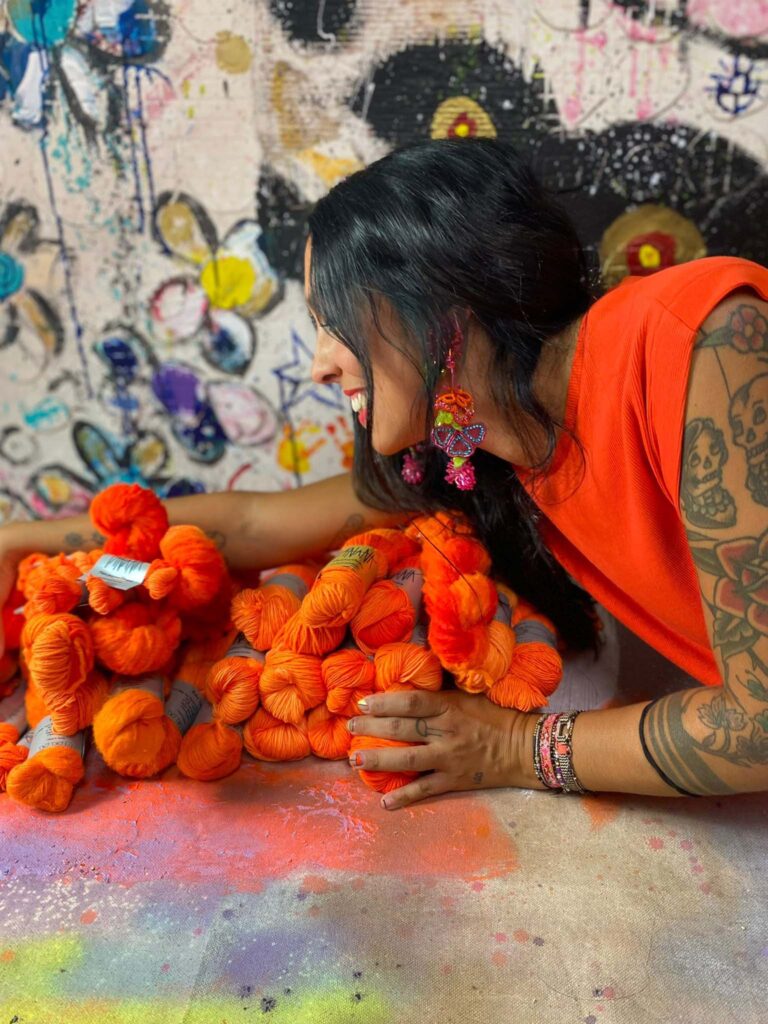 Cada madeja está teñida a mano con dedicación y creatividad, convirtiendo cada hilo en una pieza única.